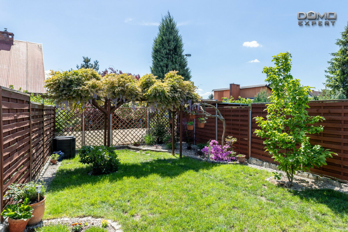 Piękne, zadbane nasadzenia drzew iglastych, krzewów, warzyw i roślin ozdobnych. Miejsce do odpoczynku i plac zabaw oraz tarasem.