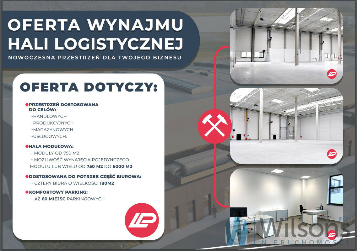 Do wynajęcia powierzchnie magazynowe i produkcyjneZ przyjemnością oferujemy wynajem budynku magazynowo produkcyjnego o łącznej powierzchni 3000 m², który obejmuje również część biurowo-techniczną. Obiekt jest ogrzewany i wentylowany, ma świetliki dachowe.