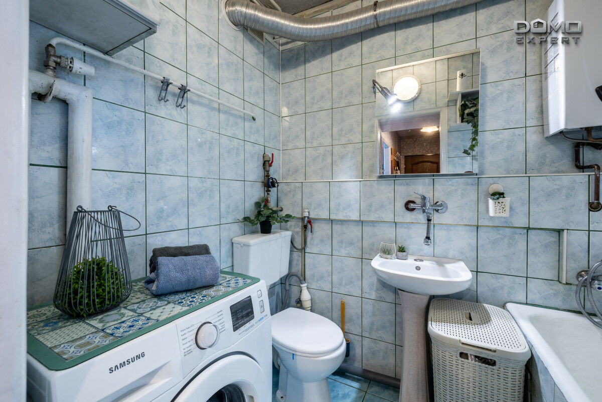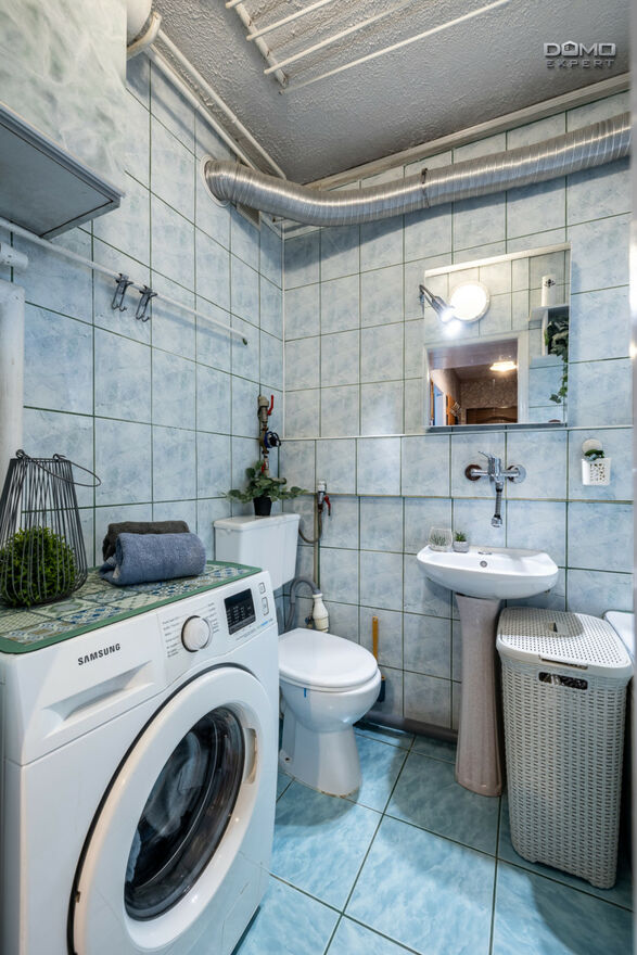 - łazienka z WC, wanną i pralką,