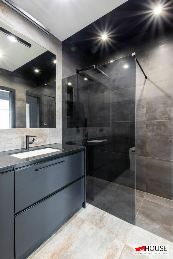 - łazienki z dużym prysznicem (typu walk in) i zabudowaną pralką,